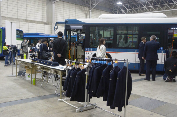 本記事「お子様運転士体験」の項にて、内容は「バス型の顔ハメで記念撮影」と記しましたが、当日にイベント会場を訪れたトコロ、同催しは貸し出ししているお子様用運転士制服を着て本物のバスの運転席に着席して記念写真を撮れるアトラクションでした。