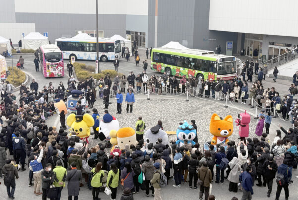 バス・イベントの内容は参加事業者のバス車両の展示はもちろん、各社局にもよるが、キャラクター集合、バスグッズ・キャラクターグッズの販売、記念スタンプなども行われる。上写真と同様に、2025年2月22日に神奈川県海老名市の ららぽーと海老名 前にある 海老名駅西口プロムナード において開催されたバス・イベント『バス利用感謝デー2024』の様子なのでイメージ。
