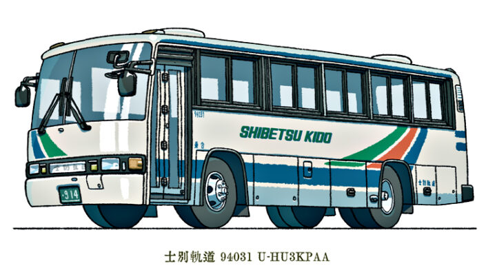 士別軌道31号車。日野U-HU3KPAA 1994年式 イメージイラスト。画像:士別軌道