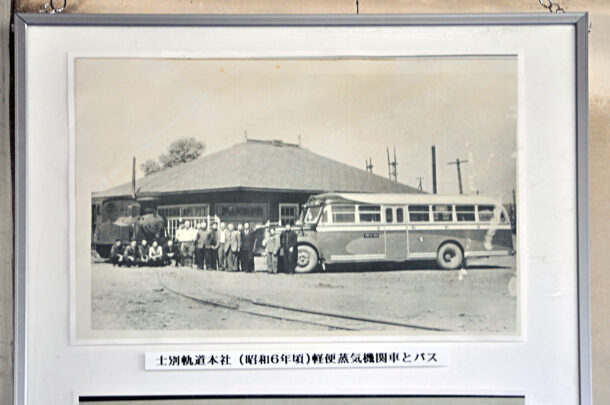 士別軌道本社待合室に展示してある過去写真のうち、鉄道車輌が写っている一枚。